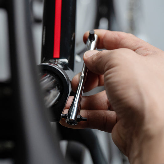 The bits on both ends are set in the cross position, allowing for continuous tightening without the bits coming into contact with the frame or chainring.