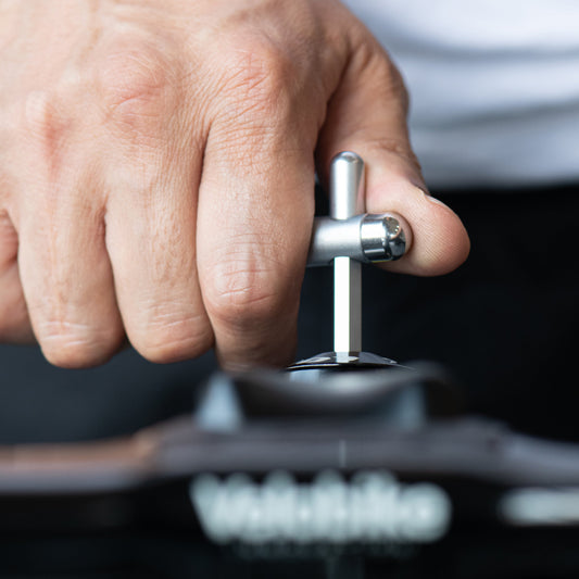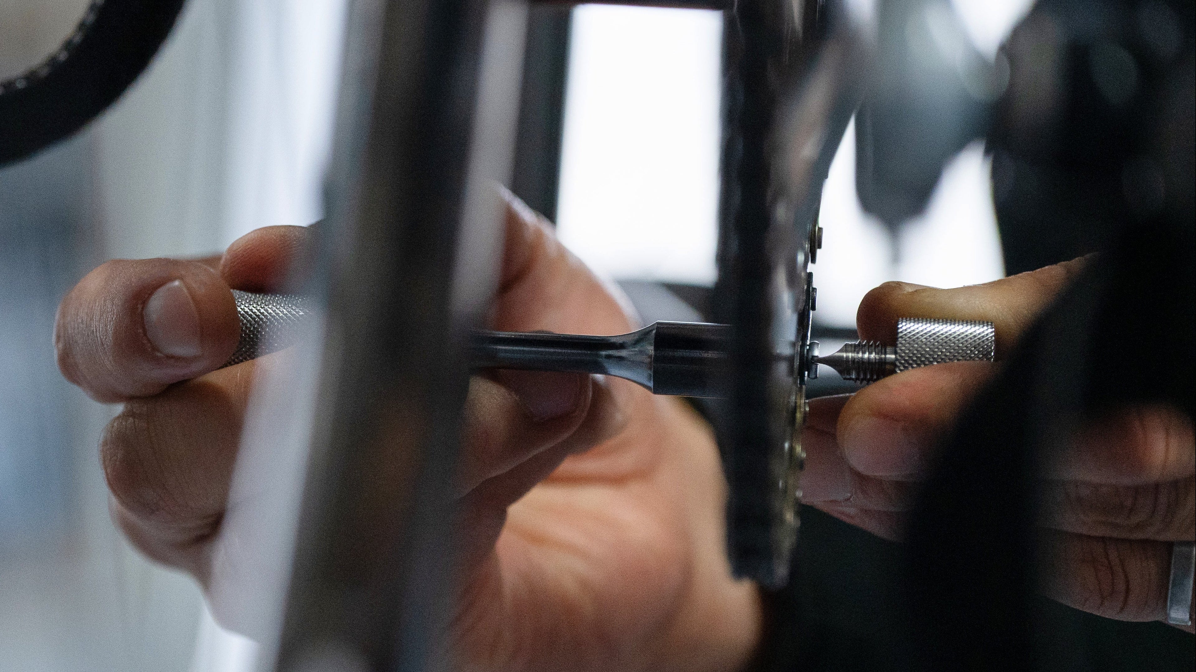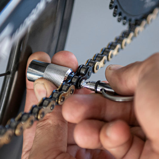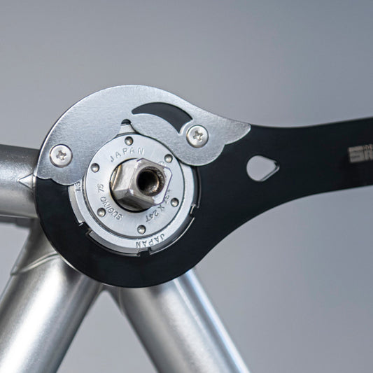 The bits on both ends are set in the cross position, allowing for continuous tightening without the bits coming into contact with the frame or chainring.