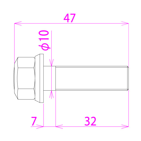Total length 47mm / Threaded section 32mm / Pitch 1.5mm