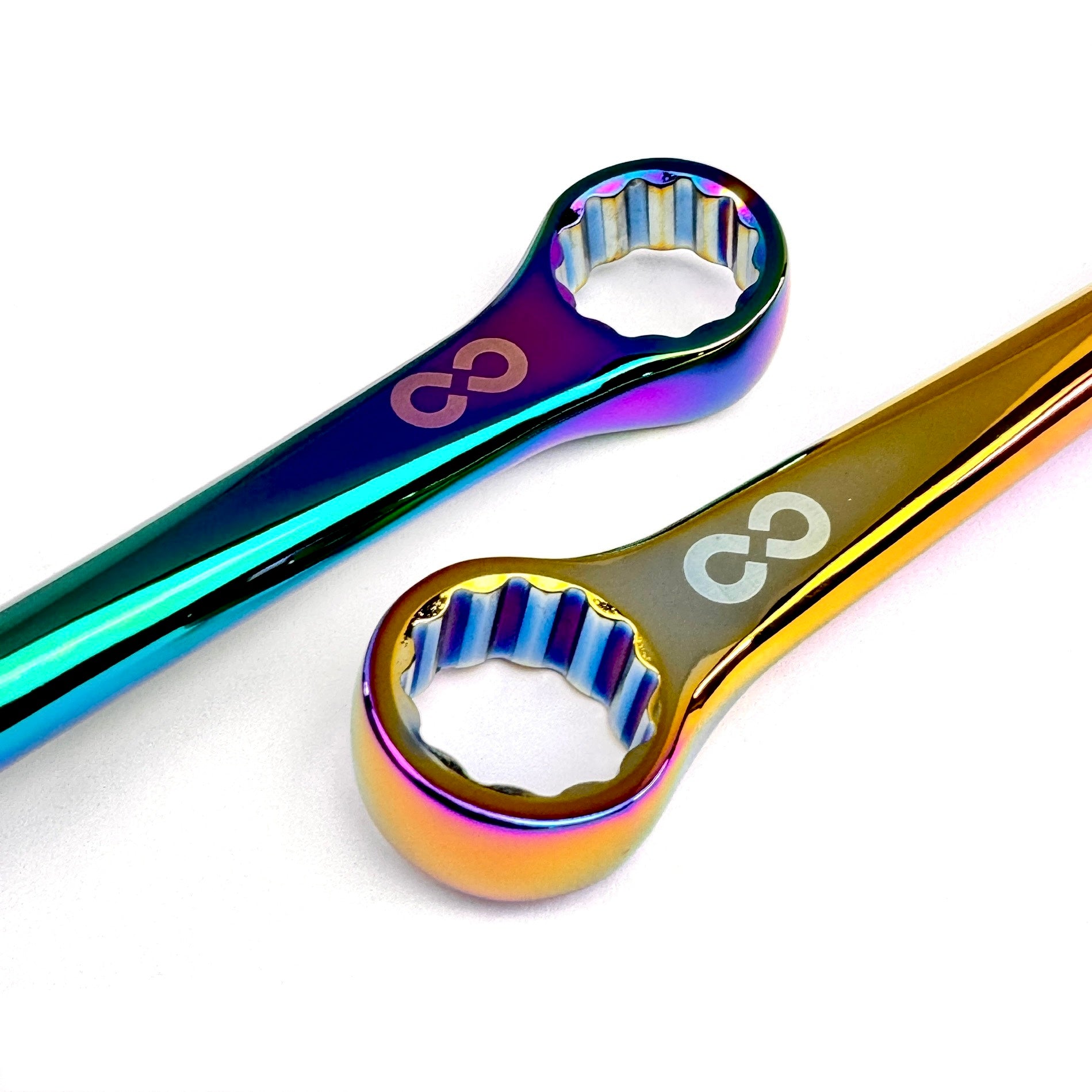 The DRIP15OS (Drip 15 Oil Slick) is a limited edition 15mm wrench created in collaboration with One Life Cycle, featuring a titanium-coated oil slick gradation on the DRIP15. To create a unique design that stands out from the rest, we selected a titanium-coated oil slick. The gradation changes depending on the time and angle the coating is applied, so each piece has a slightly different appearance.