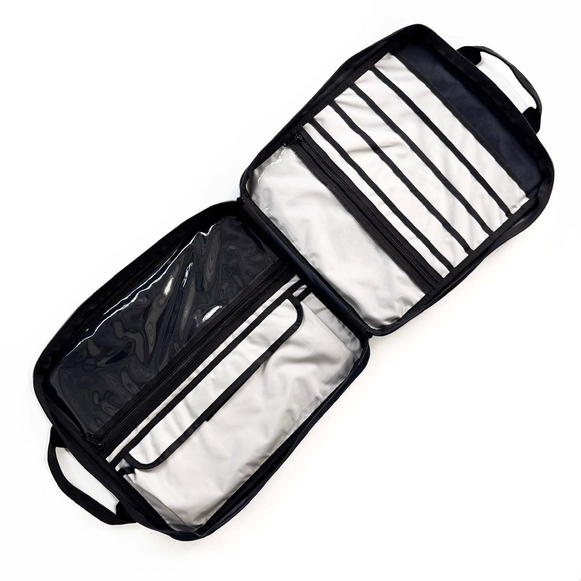 - Large transparent zippered pocket x 1